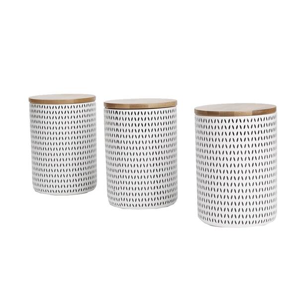 White Canister Sets Ceramic : Black And White Ceramic Kitchen Canister Set Arabesque Etsy : Only 1 available and it's in 2 people's carts.. Le creuset white stoneware 3 piece canister with wooden lid set by le creuset (348) $171. Ships free orders over $39. Mind reader small, medium, large ceramic lids, 3 pc round canister sets, food storage jar container, white/black, one size. Download on the app store. White stoneware glazed canister keep your favorite cookies, tea bags or other keep your favorite cookies, tea bags or other items accessible on the counter with this clean white canister.